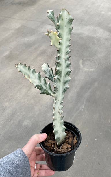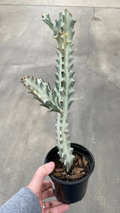 Scientific Name: Euphorbia lactea "white ghost"Common Name: White Ghost Euphorbia, Candelabra Cactus, Dragon Bones, Mottled Spurge, Hatrack Cactus ...