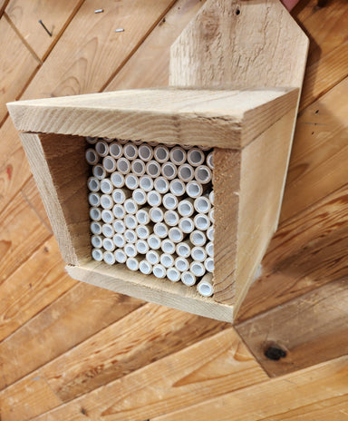 The Mason Bee House is a bundle of bamboo tubes that provide a place for mason bees to reproduce and gather pollen and nectar for their young. Afte...