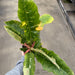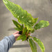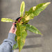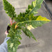 The Ring of Fire Philodendron has a long, serrated sawtooth leaf shape with a marbling variegation that gives it its name. The variegations are a combination of yellow, creamy white, and shades of green. Every leaf will be completely unique from its neighbors!