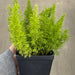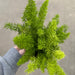 The Foxtail Fern is actually not a fern at all and comes from the Asparagus family, although it looks like & behaves similarly to true ferns, which is how it got its common name. These fun fellas look like mini pine trees with their bottle brush foliage. The foliage shows up in varying shades of light to dark green, depending on how much light they get.